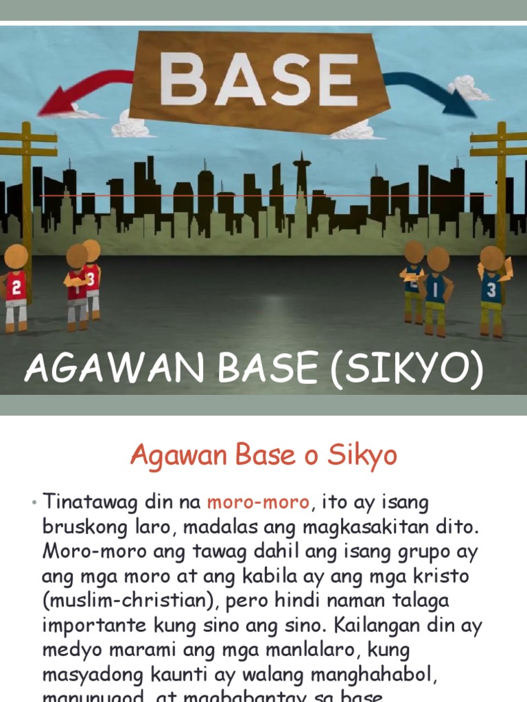 ADVERTISEMENT - CONTINUE READING BELOW. The captured opponent will be the other teams. Ang Agawan Base ay isa sa pinakasikat na larong Pinoy.