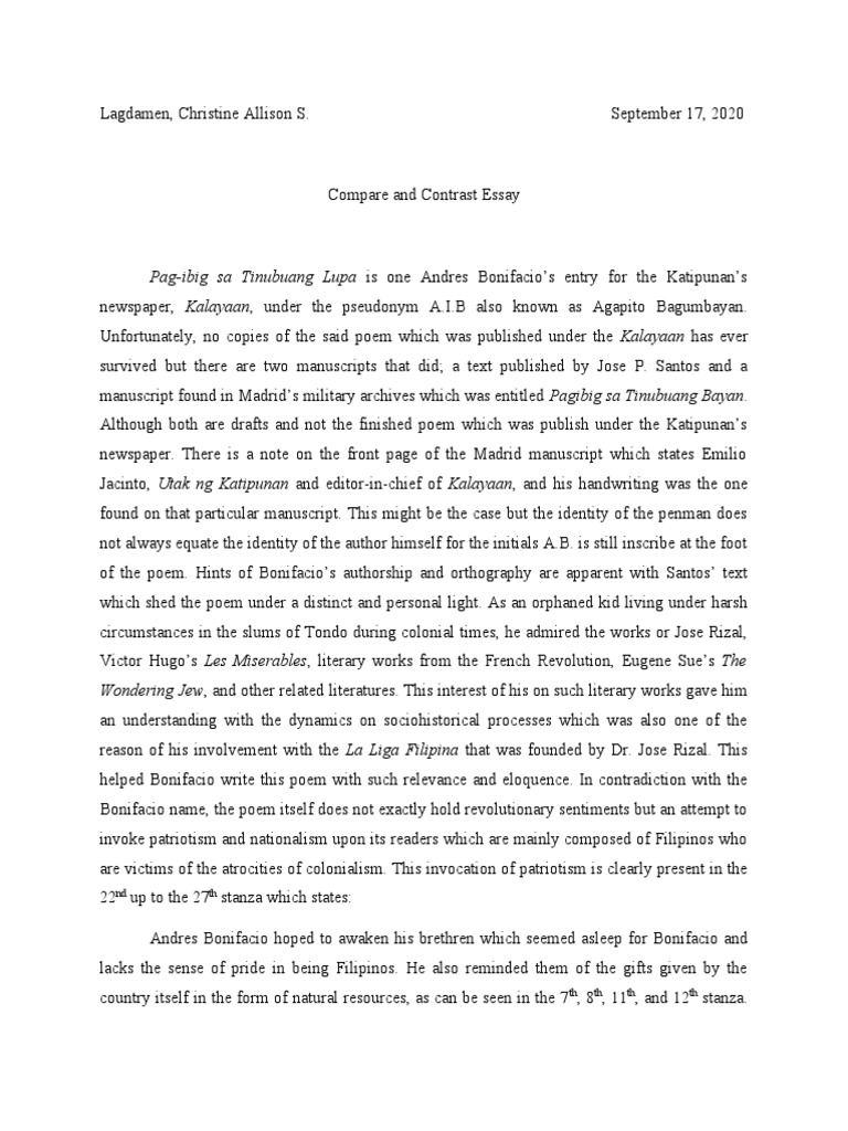 RIZAL c Laong-Laanc Wala nang pinakamagandang paksa kaysa sa pag-ibiG sa tinubuang-lupa. Sep 05 2012 When the Kalayaan the official organ of the Katipunan essays written by Bonifacio such as Ang Dapat Mabatid ng mga Tagalog and Pag-ibig sa Tinubuang Lupa were included. Rizal in Todays World Reaction Dr.